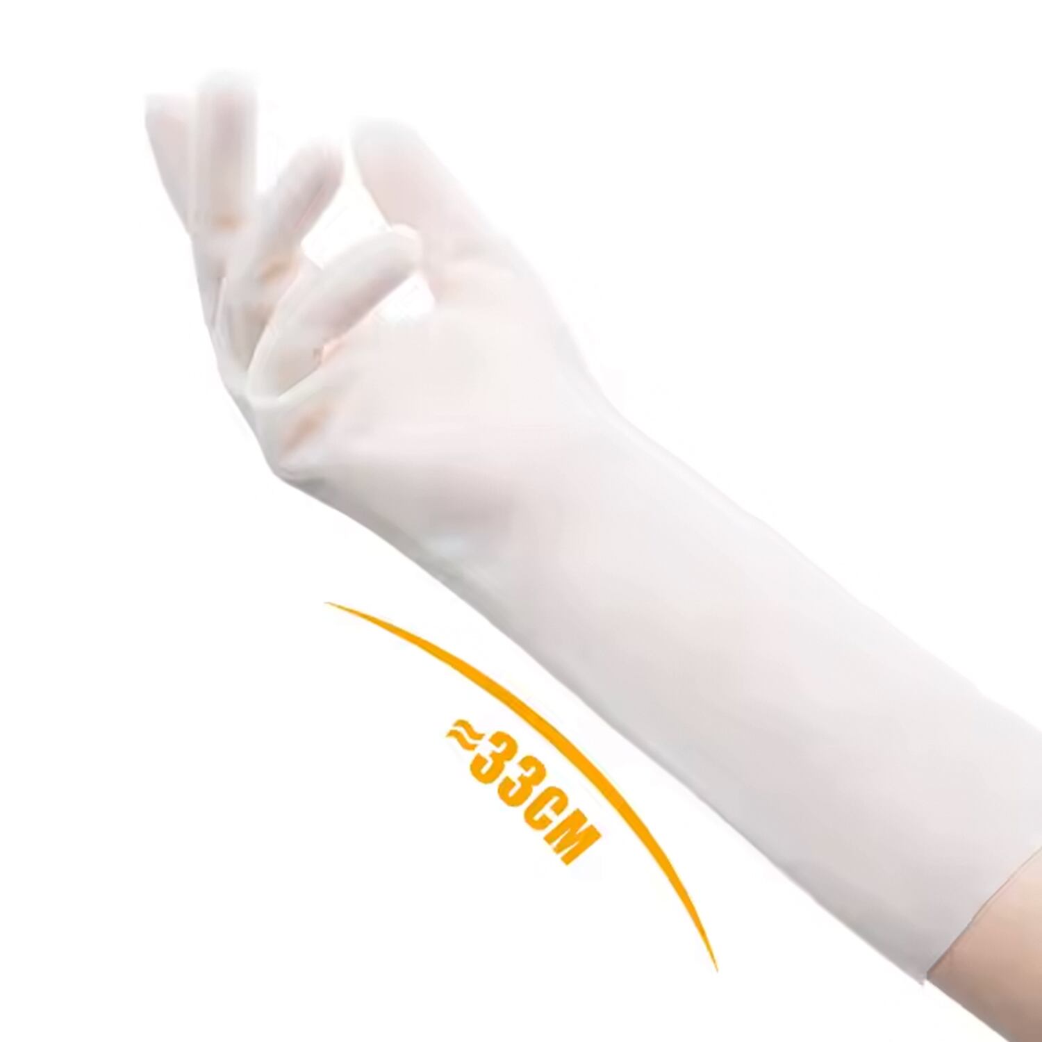 【高耐久】ニトリルゴム手袋 33cmロング(粉なし)耐切創性あり S/M/L(ホワイト)|食品衛生法適合|清掃・洗浄・水産・金属加工・脱脂・塗装・農薬対応|防災備蓄5年|真空包装 1パック2組入り|30日品質保証付き(使用中破れ対応可)